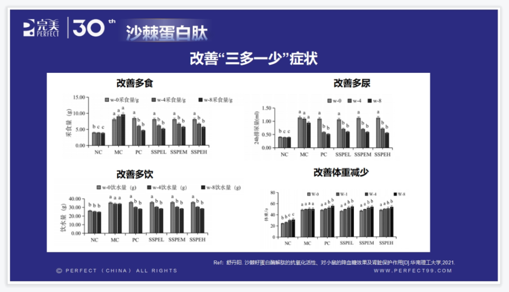 借助对沙棘蛋清的酶治理和调理活性酶类及降血脂的模块实施科学探究,最终结果显示,沙棘蛋清可看不出消减空服血糖、并调理“多食、多尿、多饮”及控制体重可以减少的症壮。